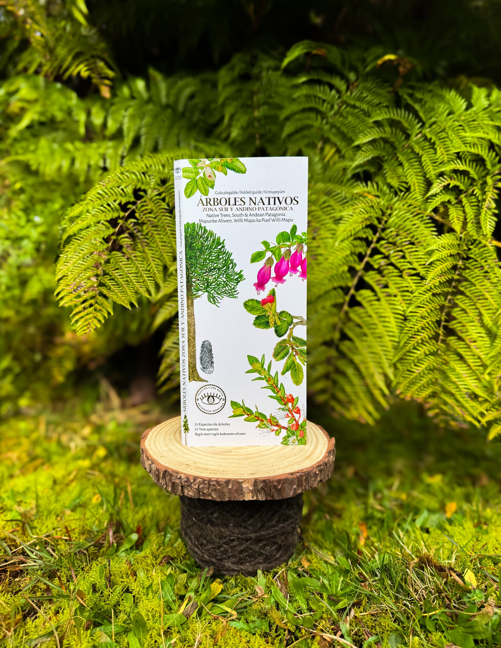 Árboles Nativos Zona Sur y Andino Patagónica es una guía que reúne 80 especies de árboles nativos del sur de Chile y la región Andino Patagónica de Argentina. Selecciona especies como el Alerce y el Coihue de Magallanes, destacando su forma, usos tradicionales y valor ecológico. Ideal para explorar bosques caducifolios y la selva valdiviana, la guía también está traducida al inglés y mapuzungun, incorporando el saber ancestral, o Itrofill Mongen.